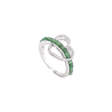 منصور للذهب يقدم لمحبي المجوهرات الفريدة تلك الخاتم، الذي يحتوي علي تصميم قلب في المنتصف مرصع بفصوص بيضاء لامعة مع فصوص خضراء في صف مستقيم، خاتم مناسب للأرتداء اليومي لما له من أناقة متناغمة مع تصميم عصري.